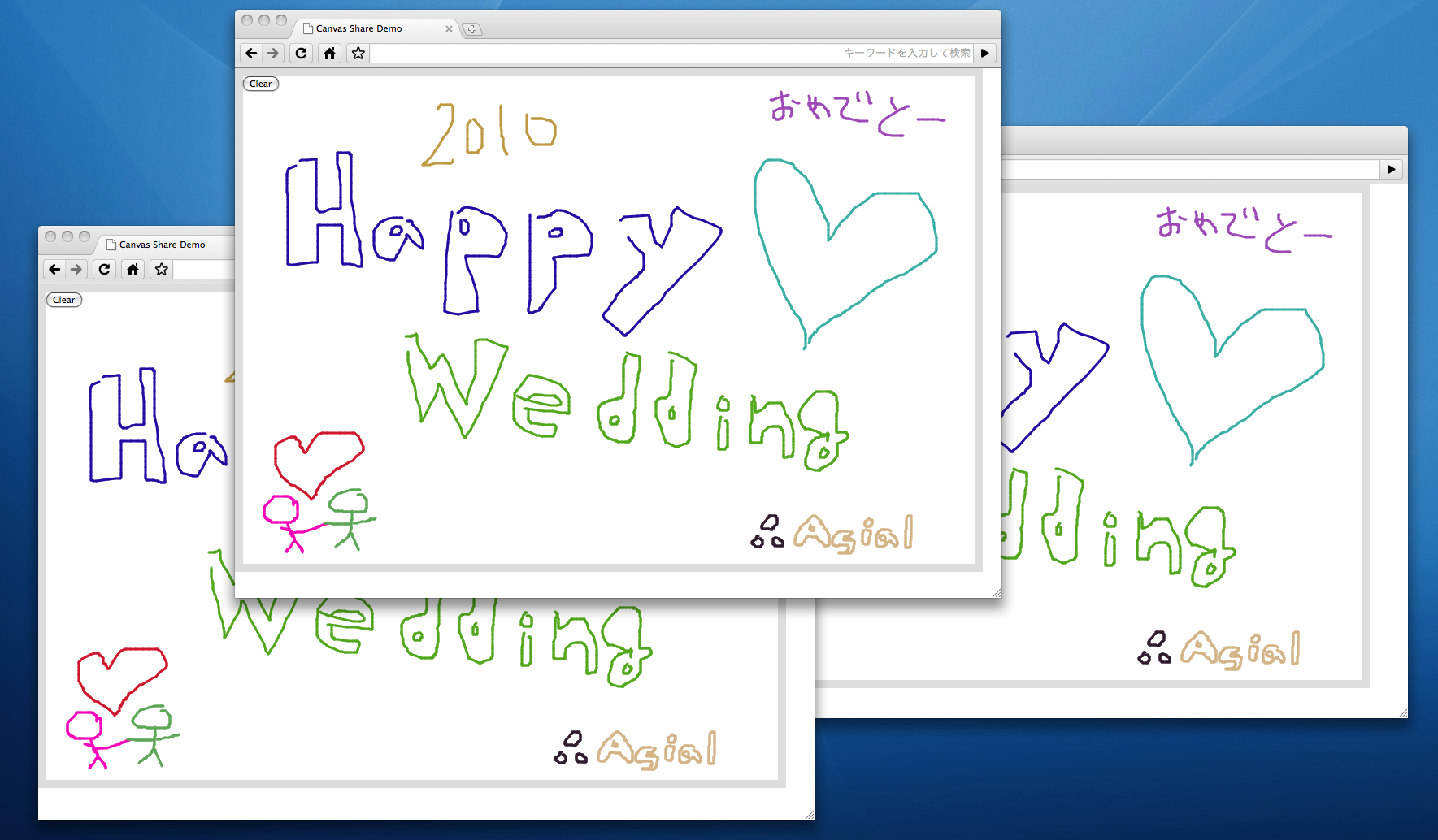 あとは、対応ブラウザを複数ウィンドウ立ち上げて、それぞれ