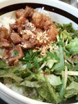写真は豚肉かけご飯です。味はちょっとくどい。。だけど400円だから我慢します。