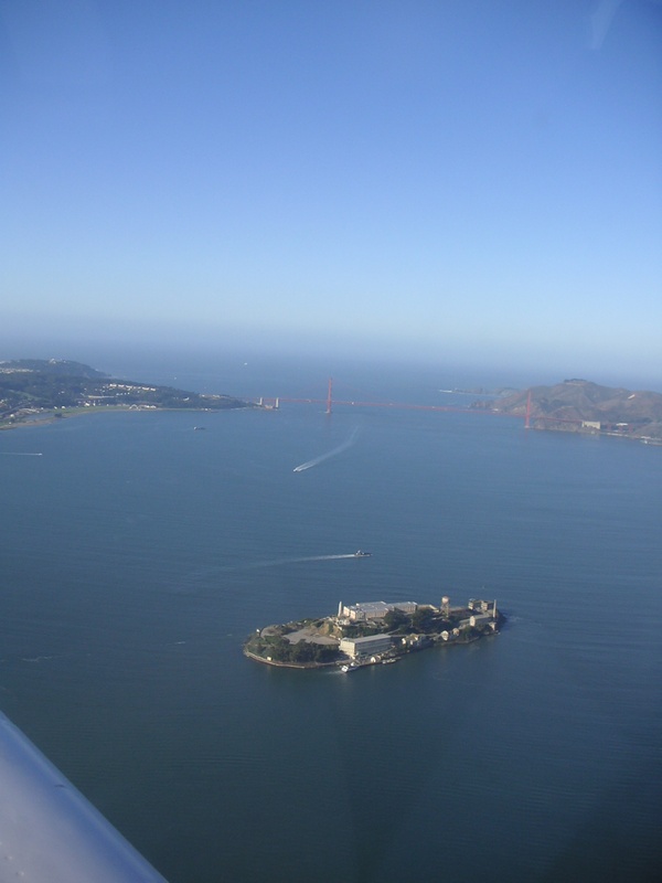 赤く映っているのがゴールデンゲートブリッジで、この上空を通過しました。