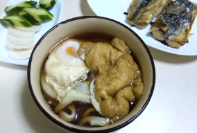 きつねうどーん。おあげは生地を寝かせてる間に仕込みました☆