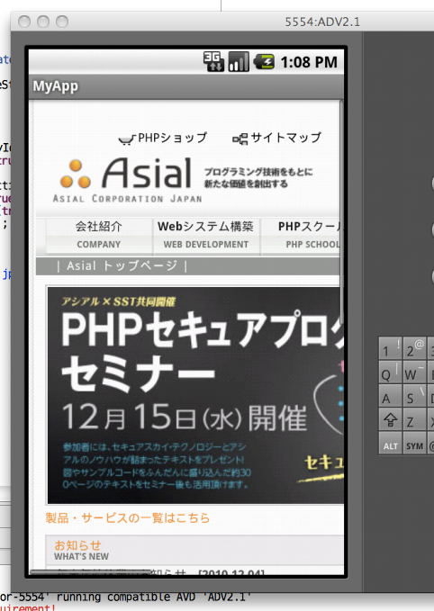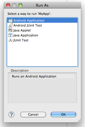 試しにこの状態でAndroid Applicationとして実行させてみます。