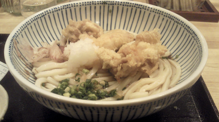 下味のついたとり肉とだし汁の甘み、衣のかりっとした部分と汁にひたって少しくてっとなった部分、そしてうどんのこしが一度に味わえて、とても美味しいです。