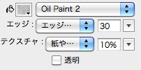 そして、塗りのエッジ(エッジをぼかす:30px)、テクスチャ(紙やすり)に設定します。