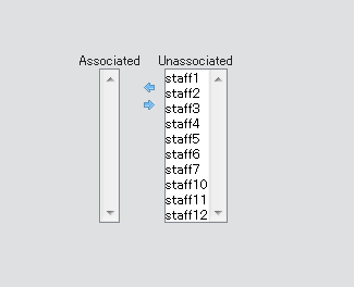 初期状態では左が選択済みリスト、右が候補リストになっていますがこれを逆にします。