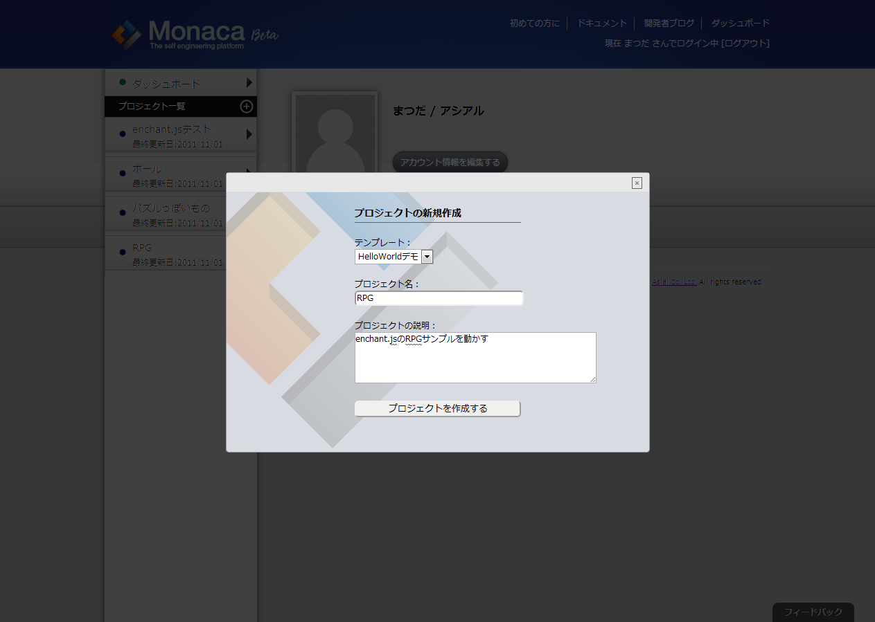 RPGのプロジェクトを選びます。すると・・・