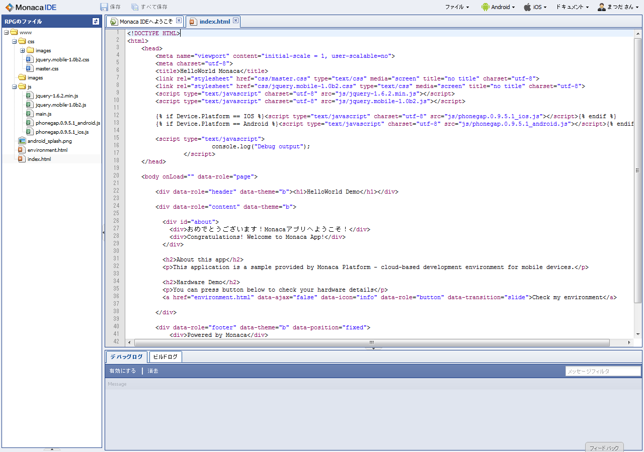 MonacaはHTML5ベースのコードからAndroidアプリとiOSアプリを同時に生成できるツールです。