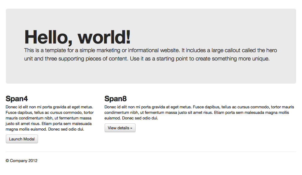 Hello, world!のグリッド領域がspan12なので、どのように分かれているかわかりやすいですね。