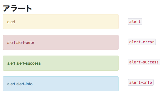 色は4種類あり、黄色以外のボックスにするには、alertとalert-successなど、色に対応したクラスを一緒に付与します。