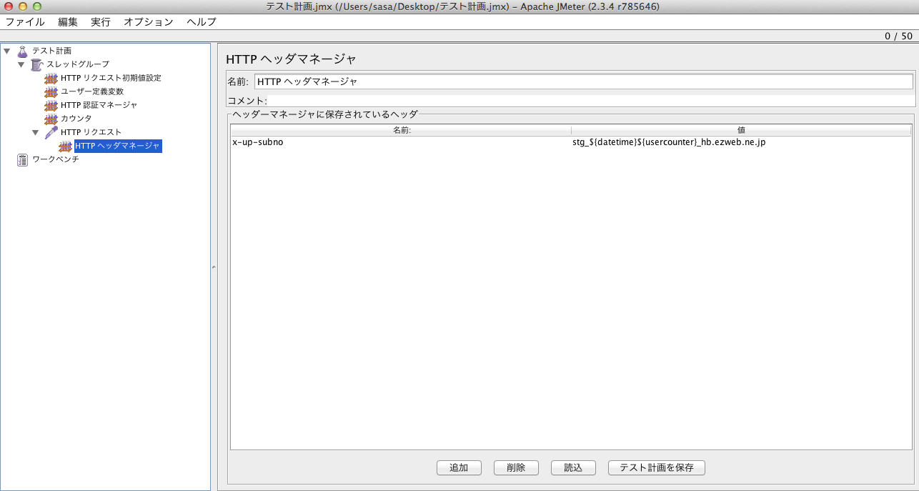 実行コマンド例:/Applications/jakarta-jmeter-2.3.4/bin/jmeter
