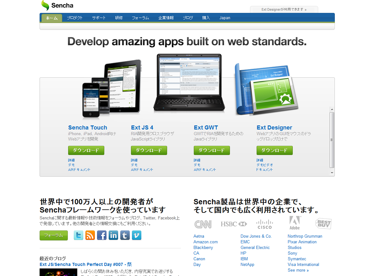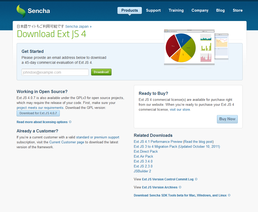 早速、Senchaのサイトにアクセスし、ExtJSをダウンロードします。