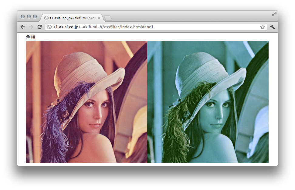 色相を変更する際には、hue-rotate関数を使います。引数には色相環を回転させたい角度を指定します。