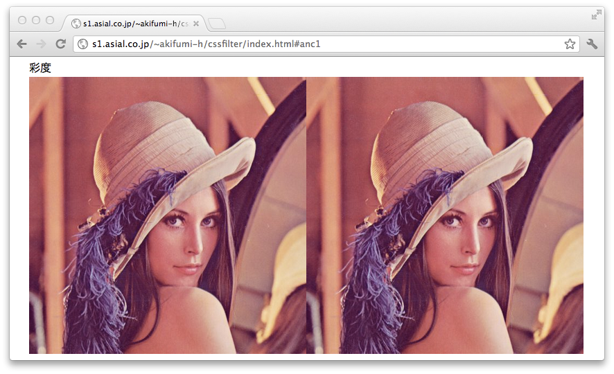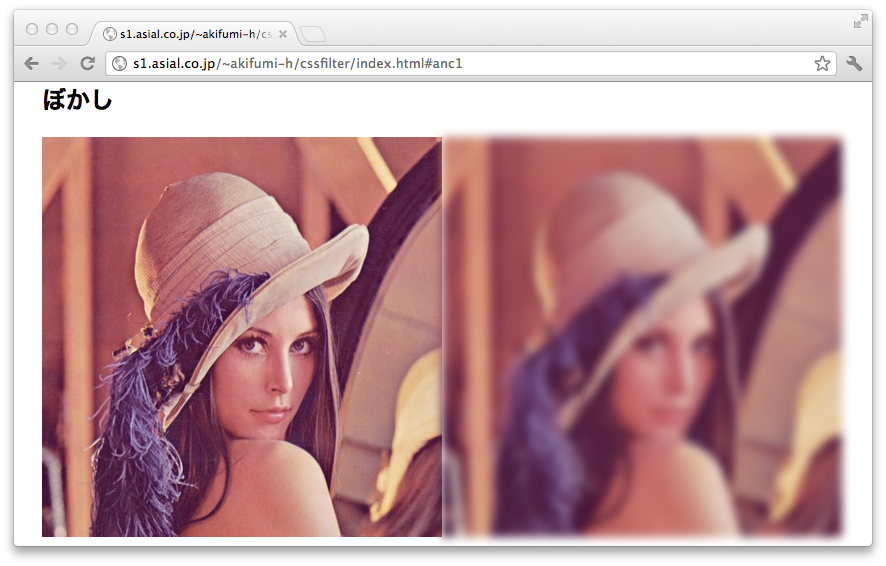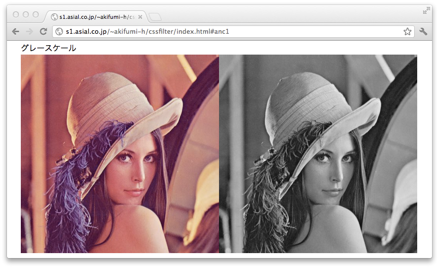 フィルターを適用するためには、filter属性(ベンダプレフィクスが必要)に対して、適用したい画像処理用の関数を指定します。