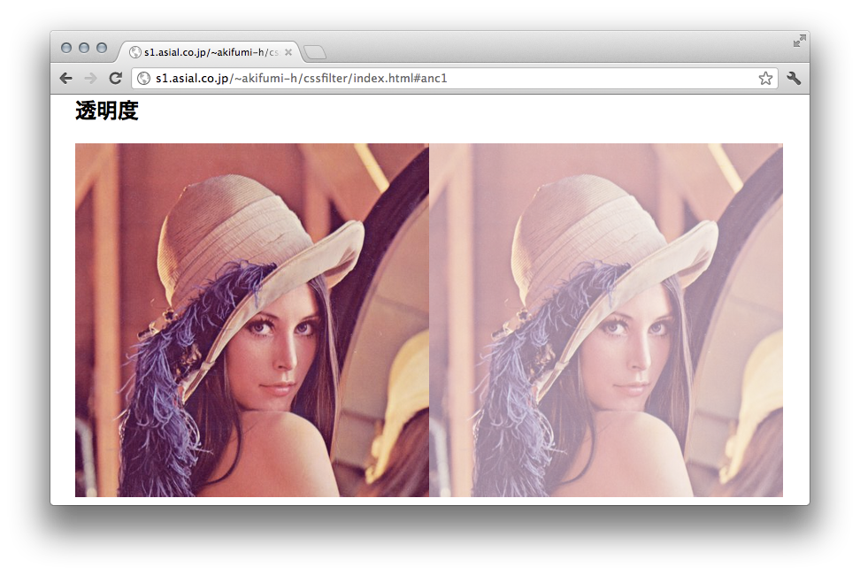 また、上記のフィルタに対して、CSS3transitionプロパティを使って、アニメーション効果を適用することも可能です。